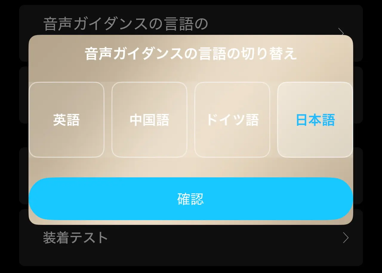 ▼なお、アプリからイヤホンの音声ガイダンス言語を切り替えることも可能。