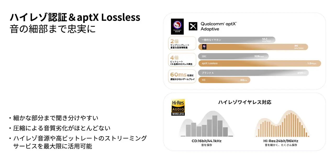 | 対応コーデック | SBC/AAC/LDAC/aptX/aptX Adaptive/aptX Lossless |
