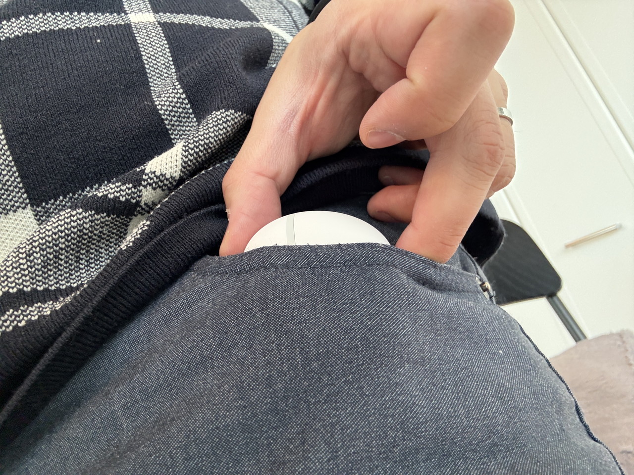 ▼コンパクトかつ薄型のため、ズボンのポケット等にも簡単に収まる。