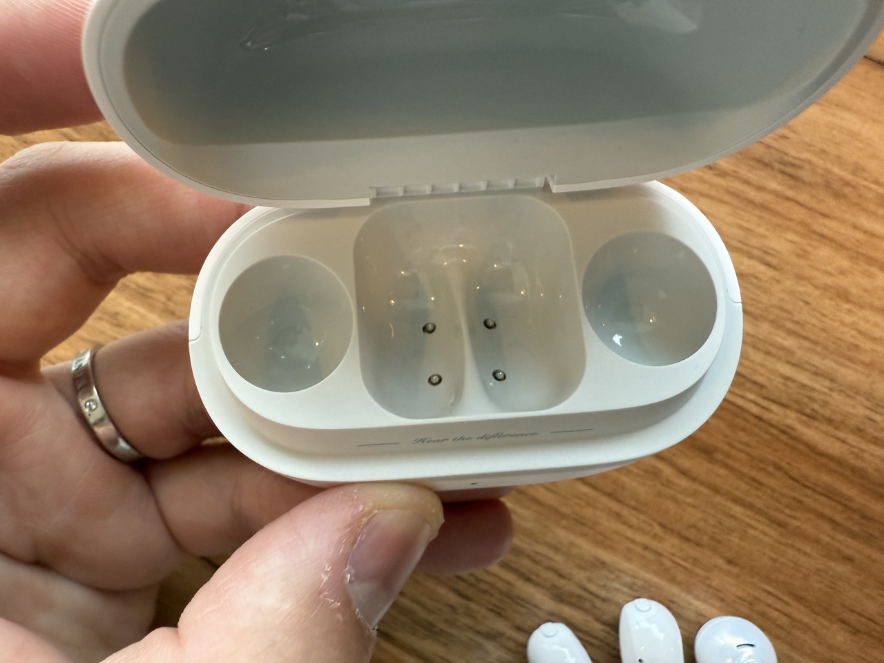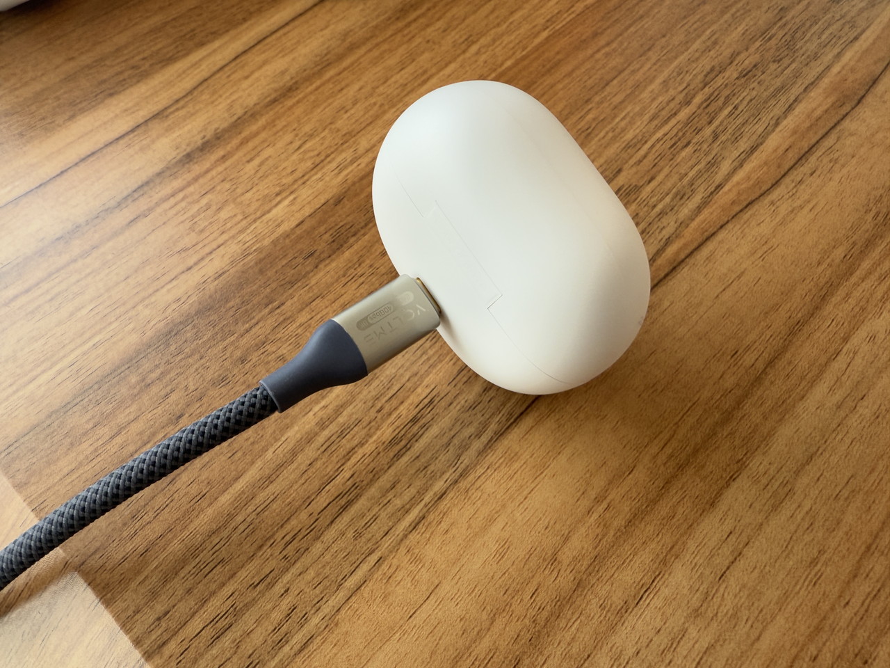 製品には収納とイヤホンの充電器を兼ねたチャージケースが付属する。Type-Cケーブルによる有線充電に対応。ワイヤレス充電には対応していない。