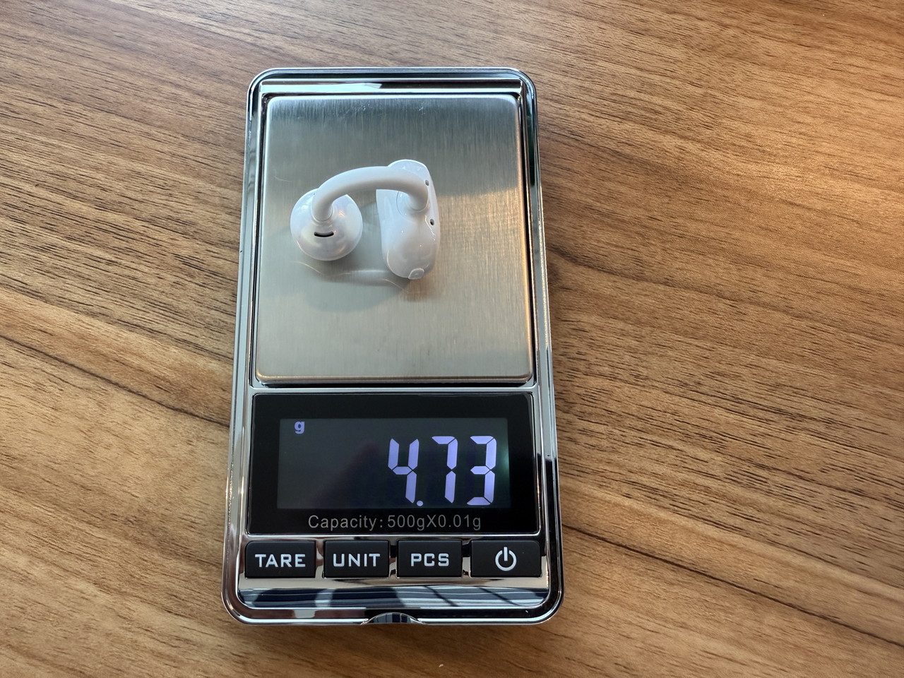 ▼イヤホン単体は、実測で約4.73gと非常に軽量。