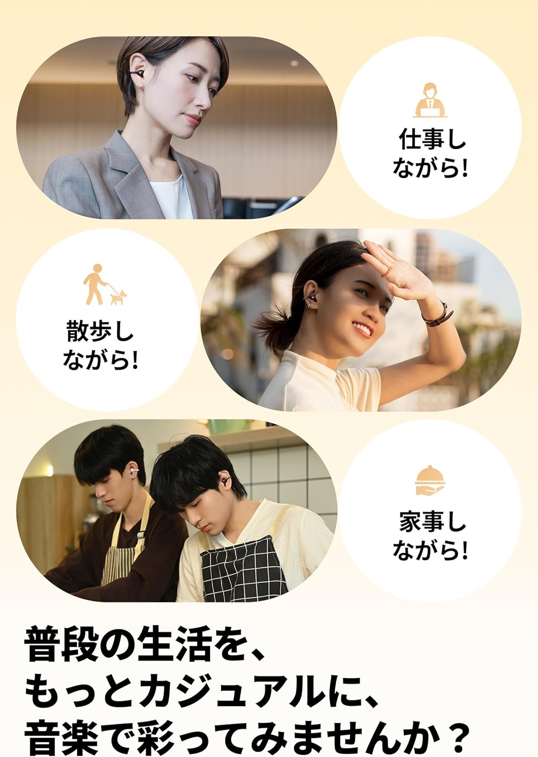 耳穴が解放されているのに音楽を楽しめるという感覚は、一度体験すると病みつきになること間違いなしだ。