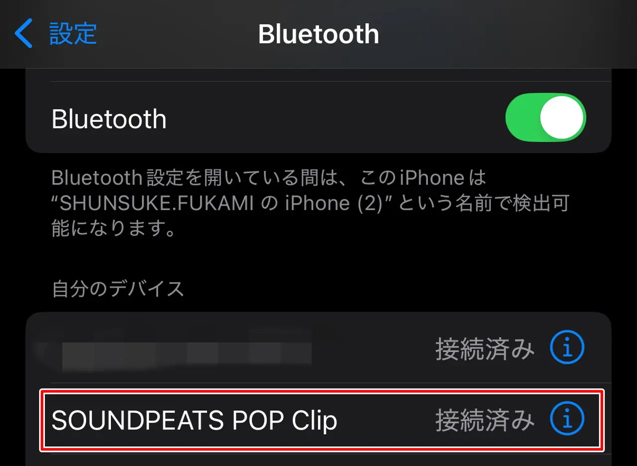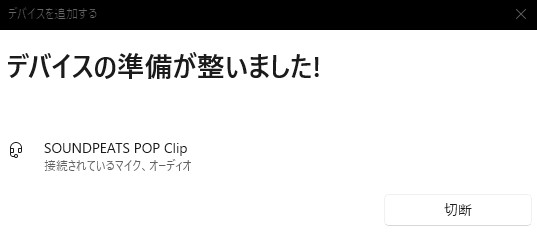 そしてデバイス側で、本製品の正式名称である "SOUNDPEATS POP Clip" が表示されるので、選択することで接続(ペアリング)が完了する。