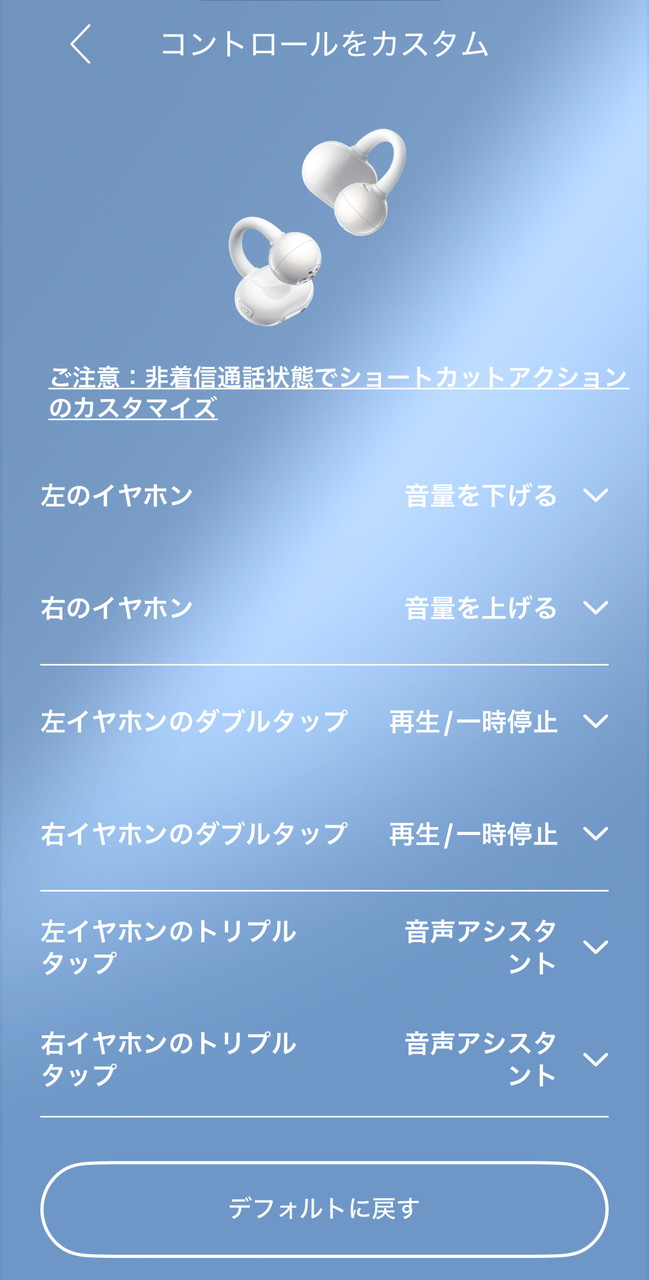 ▼曲送り/戻し、ボリューム調整、音楽再生/停止など、好みの機能を割り当てることができる。