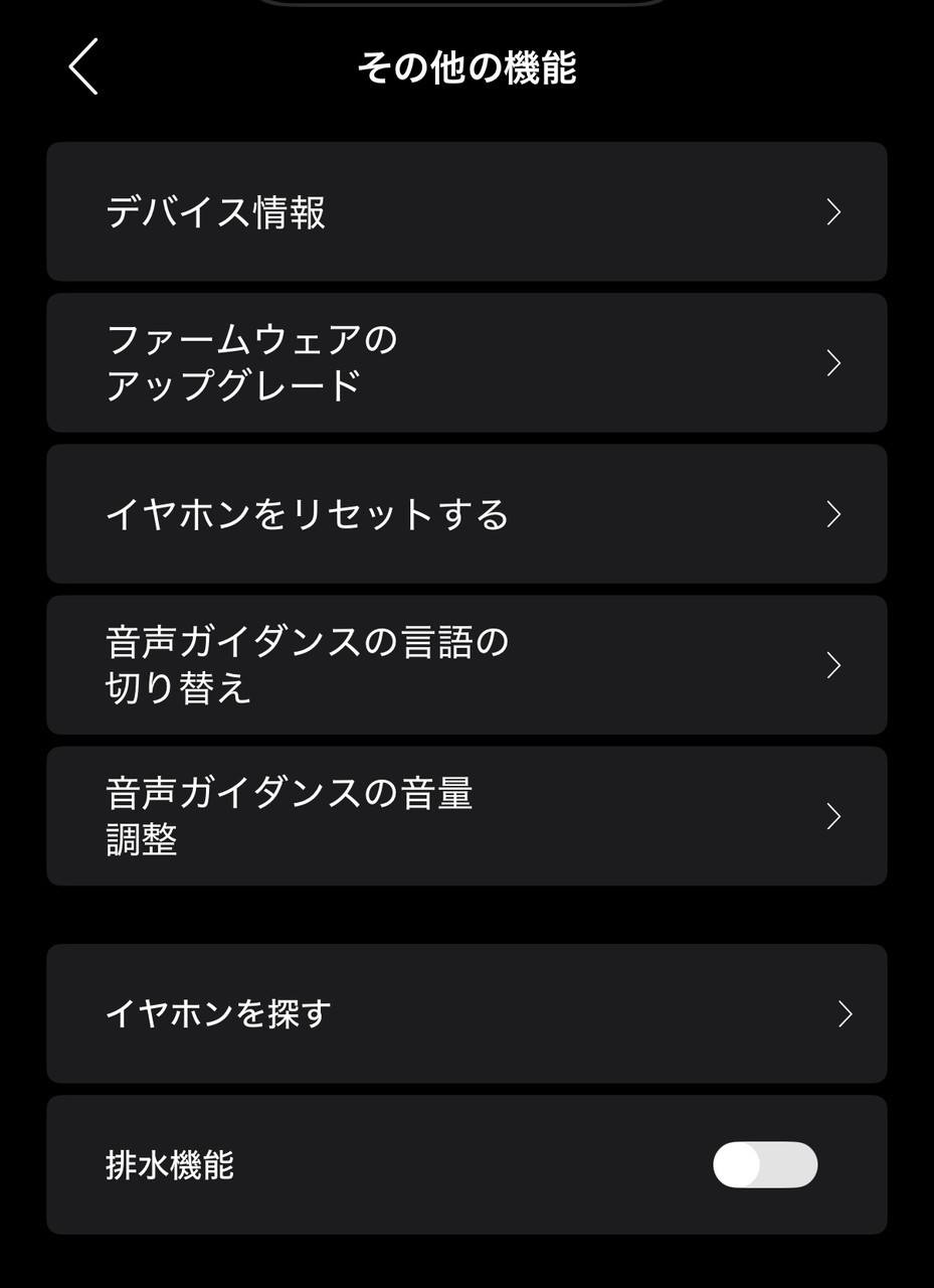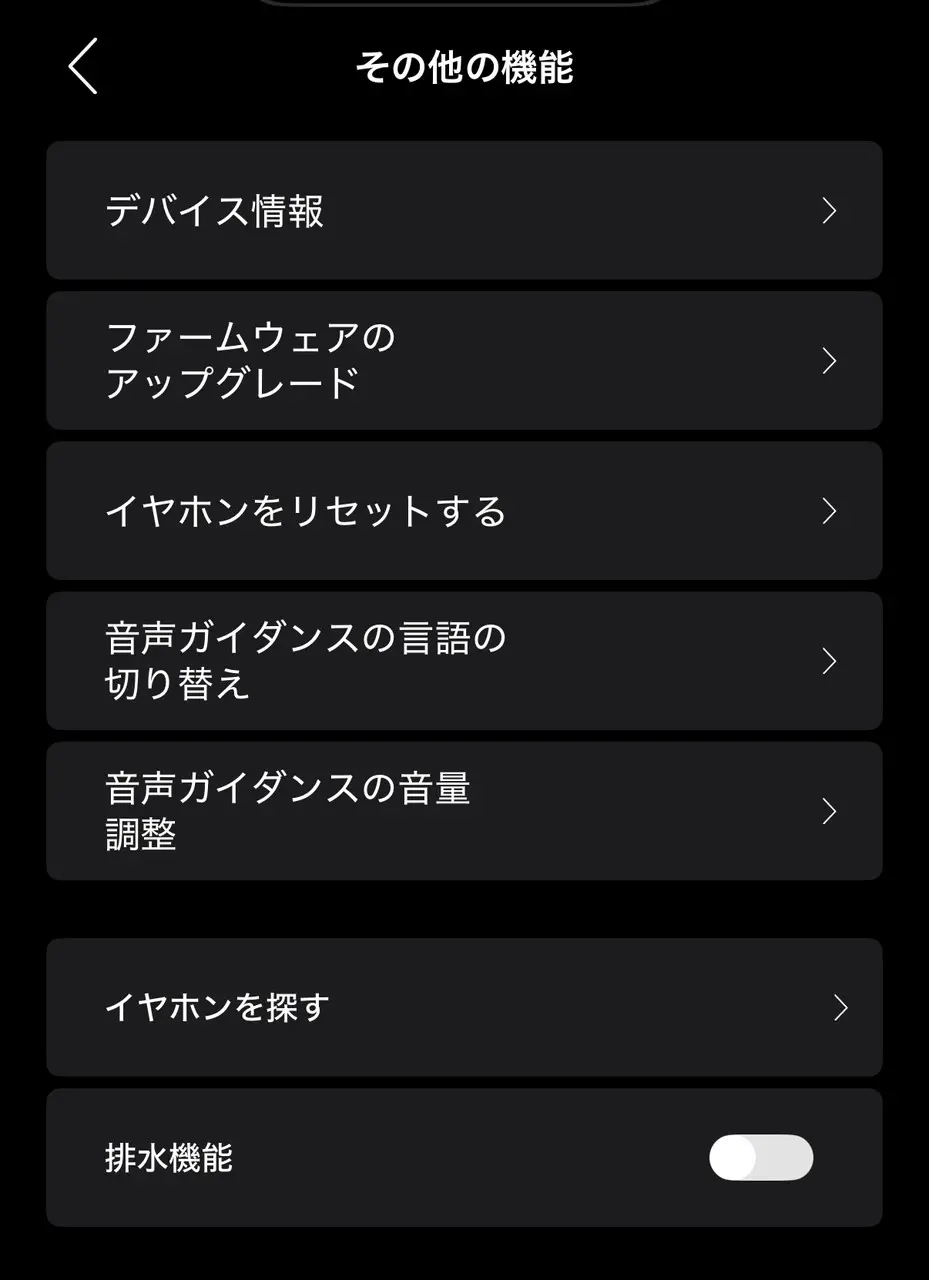 アプリ機能も充実しており、EQプリセットの利用など、自身の使い勝手が最も良くなるようにイヤホンをカスタマイズすることが可能。「イヤホンを探す」や「排水」などの便利機能も用意されている。