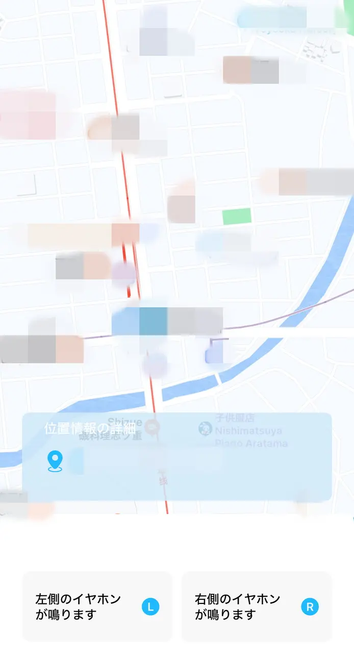 アプリ上で「イヤホンを探す」画面を起動すると、接続中のイヤホンの位置がマップ上に表示される。