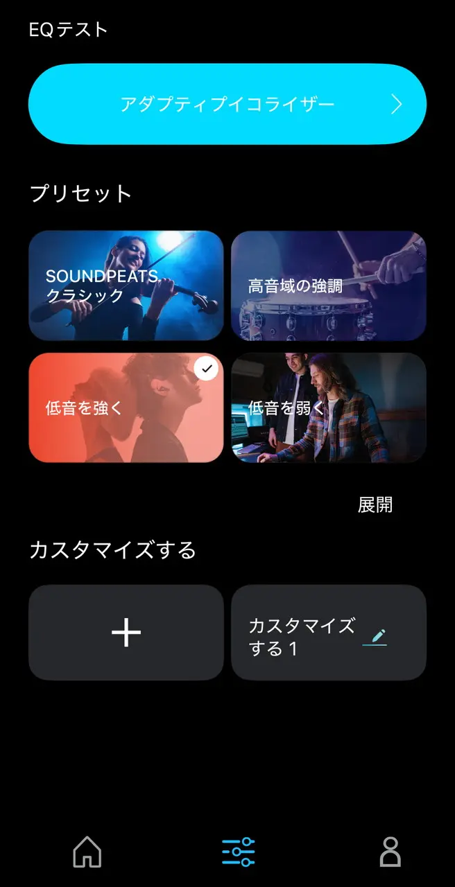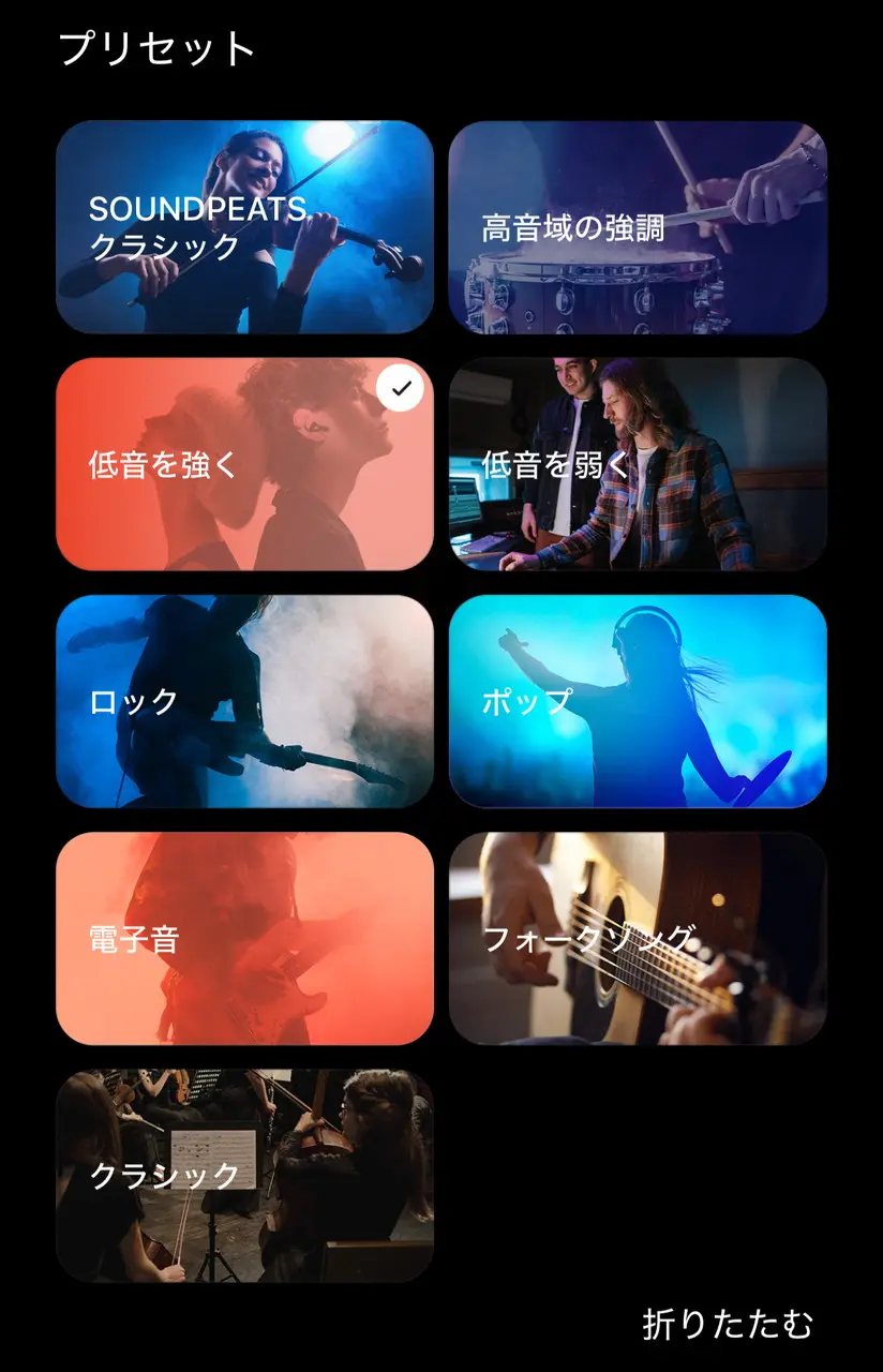 公式アプリ上では、複数のイコライザープリセットを利用できる。
