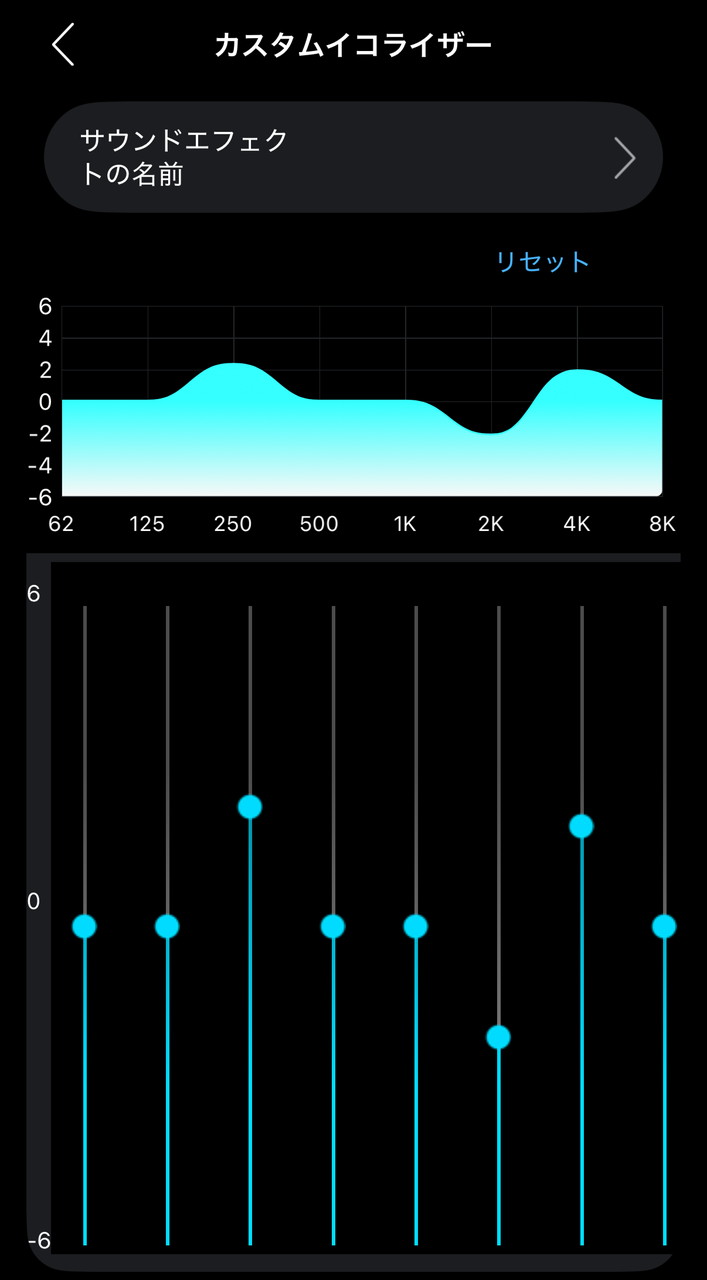 音響にあまり詳しくない方にとって、イコライザーをイジるのは敷居が高いが、このようにプリセットがいくつも用意されているおかげで、音の変化を気軽に楽しめるのは便利な機能であると感じた。