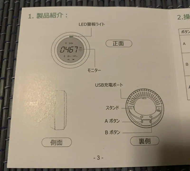 なお、CO2濃度が危険範囲(赤色)に達すると、警報ブザーにより音で知らせる機能もある(Bボタン長押しでON/OFF切替可能)。