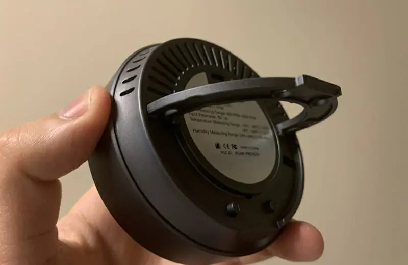 CO2センサー本体の大きさは直径約8センチ、厚み約3センチと非常にコンパクトであり、ズボンのポケットにも入るほどの大きさだ。