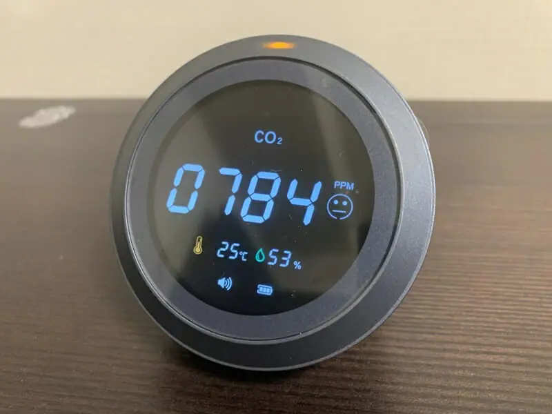 そこに私が座り込み、1時間ほど経過すると、CO2センサーのLEDランプが黄色に点灯した。