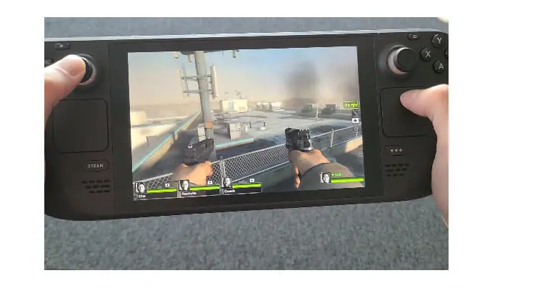 ▼任天堂から発売されている、「Nintendo Switch」ほどの大きさのポータブルゲーム機で、steamの最新のAAAタイトルも快適に動作します。