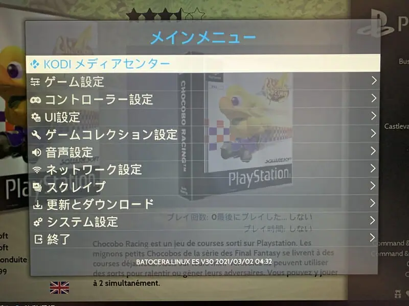 エミュが起動すると、各ゲーム機およびゲームタイトルの選択画面が表示される。