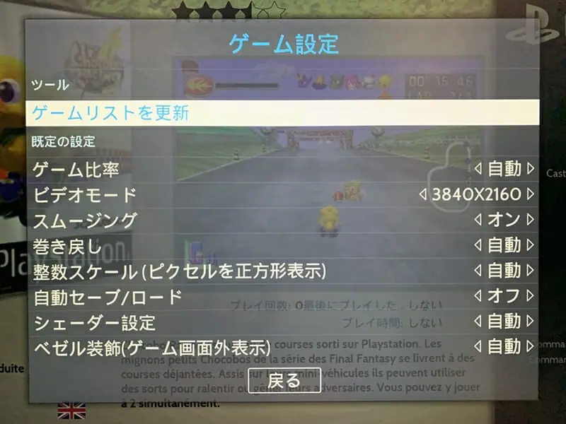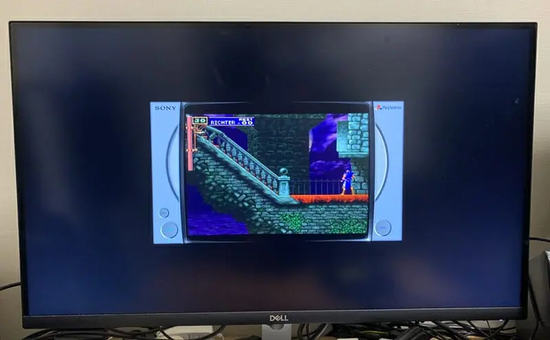 PS1など解像度の低いタイトルをプレイする際は、ドットの粗が目立たないように画面サイズが制限される。