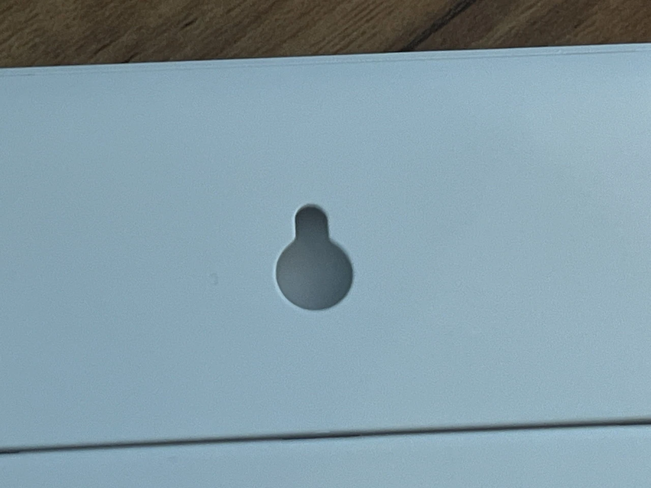 ▼背面上部には、壁掛け設置用の穴が空いている。