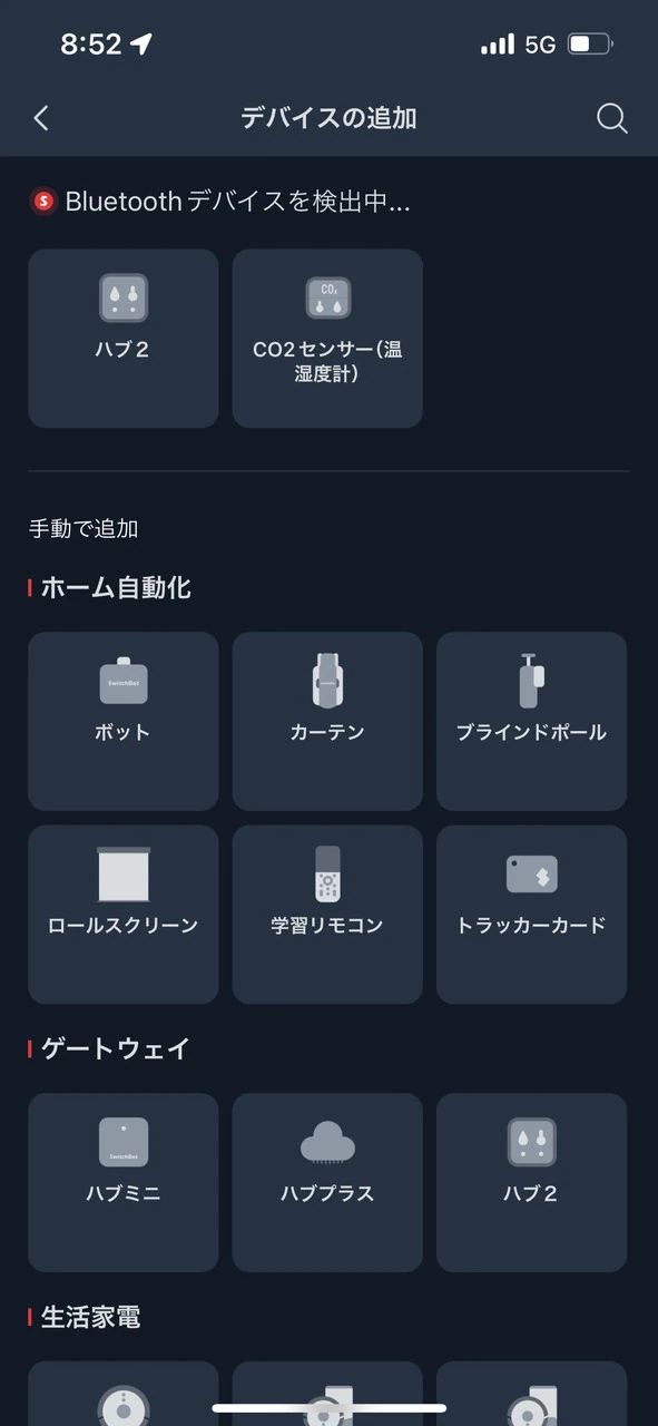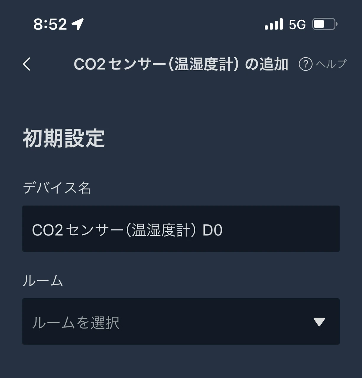 この状態でアプリを開き、検出されたデバイス「CO2センサー(温湿度計)」を追加する。
