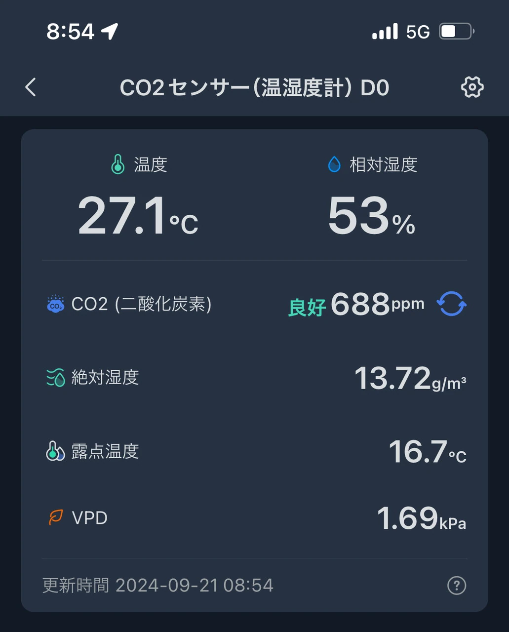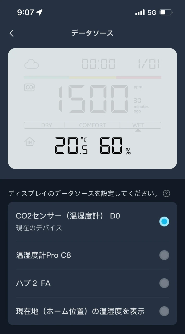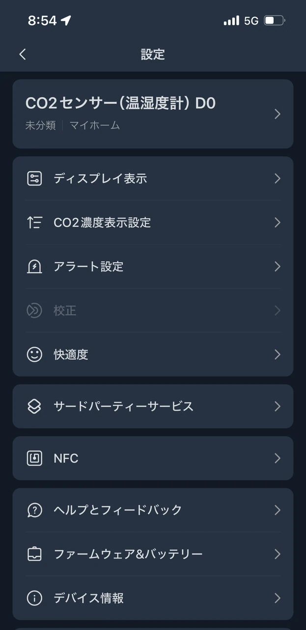 初期設定が完了すると、スマートホームデバイスの一員として、アプリ上にCo2濃度計が追加される。
