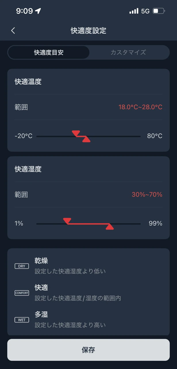 この快適度を判定する基準は、アプリから細かく調節することが可能だ。