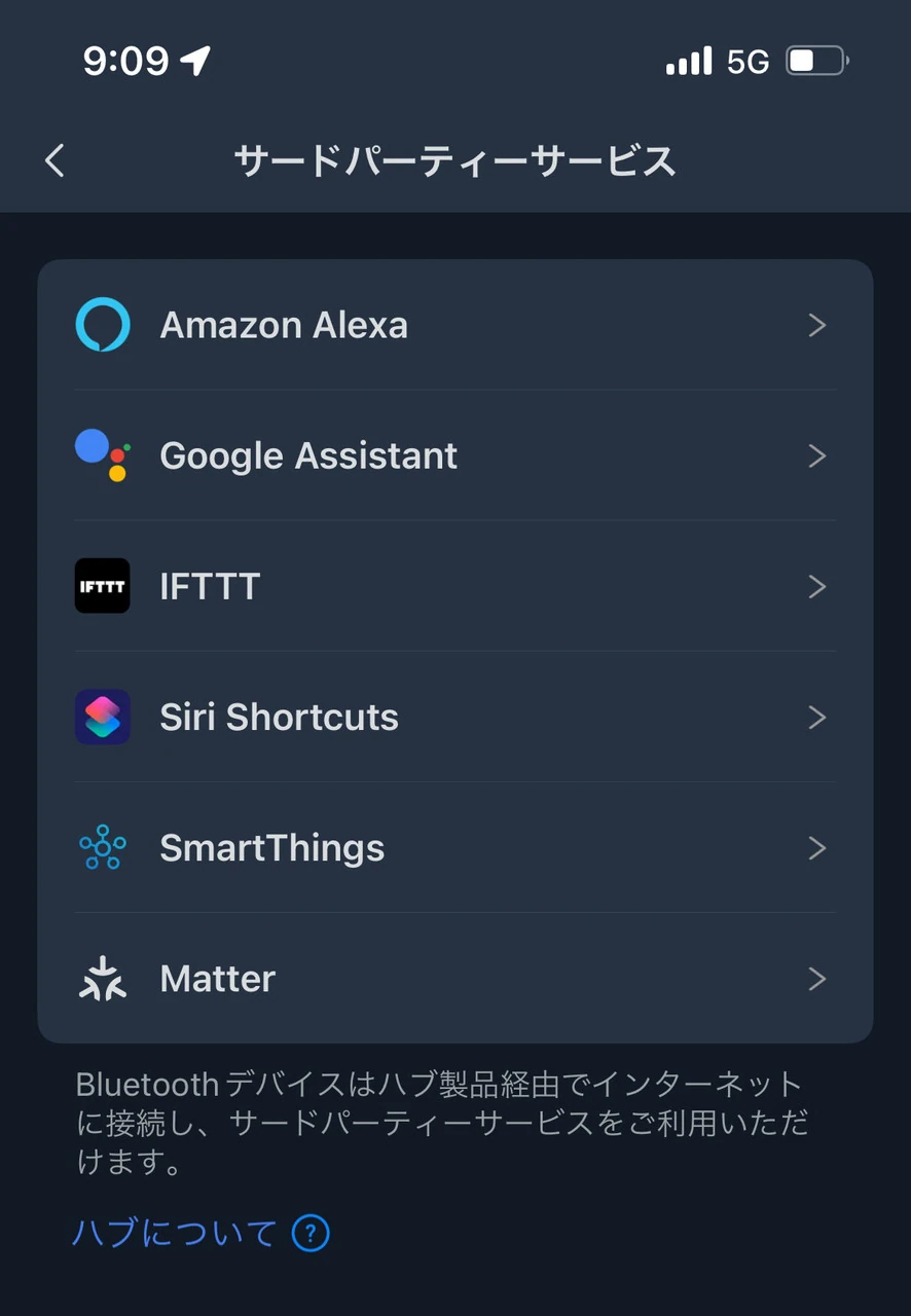 | スマートスピーカー(ハブ必要) | Alexa/Google/Siri/SmartThings |
