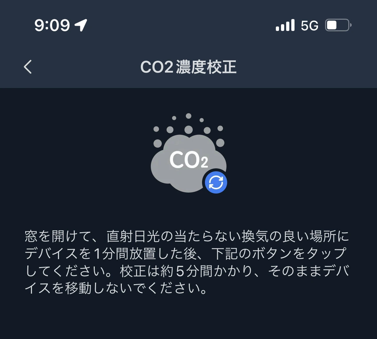 初回起動時にはCO2濃度の計測値に誤差が出やすいため、画面上の指示に従って一度校正しておくことをオススメしたい。