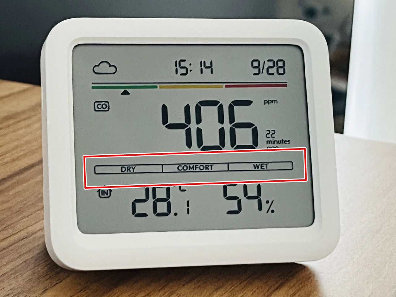 ▼快適度は「DRY(乾燥)」「COMFORT(快適)」「WET(ジメジメ)」の3種類で表示される。