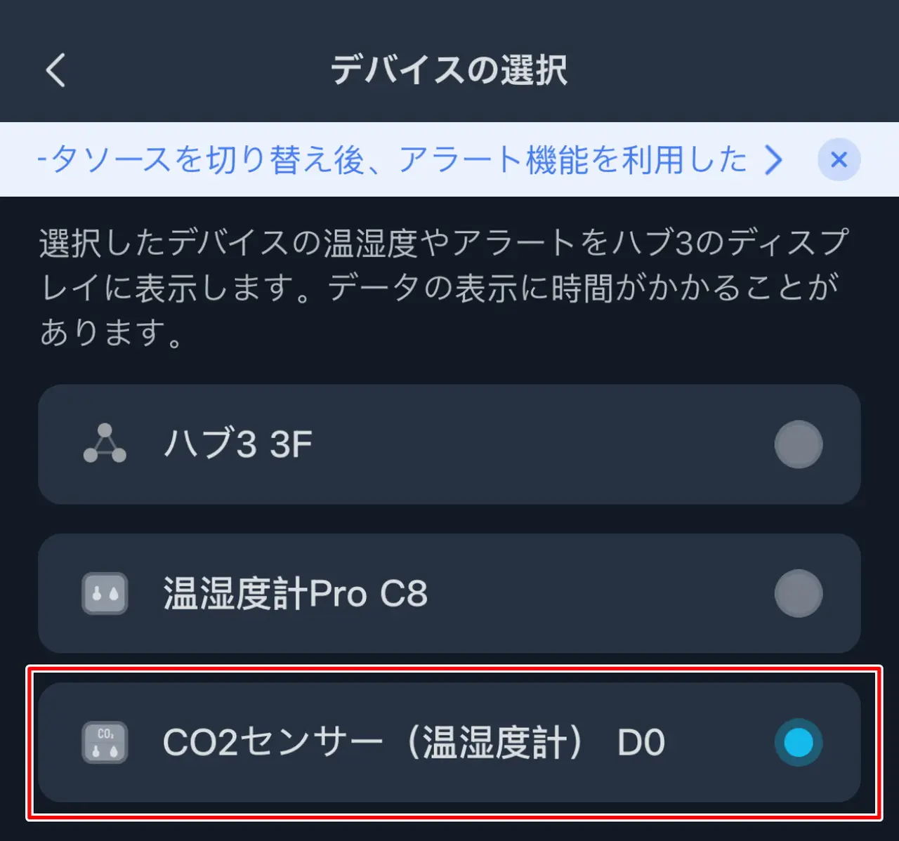 CO2センサーを連携することで、ハブ3のディスプレイ上にCO2センサーの計測データを表示できるようになる。