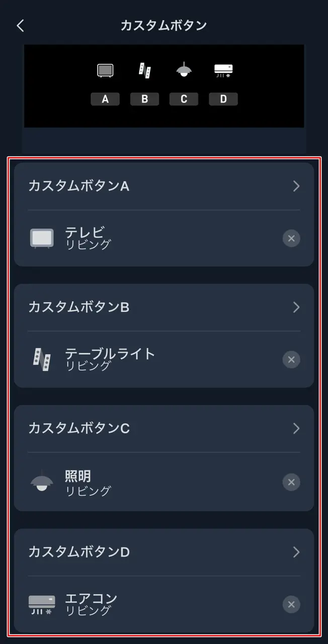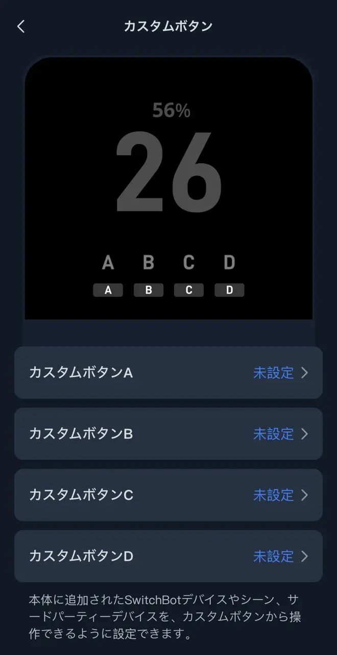 前述したハブ3の「カスタムボタン」において、これらのSwitchBotデバイスや赤外線家電リモコンをカスタムボタンに割り当てることで、ハブ3の物理ボタン、ダイヤルを用いて各デバイスを操作できるようになる。