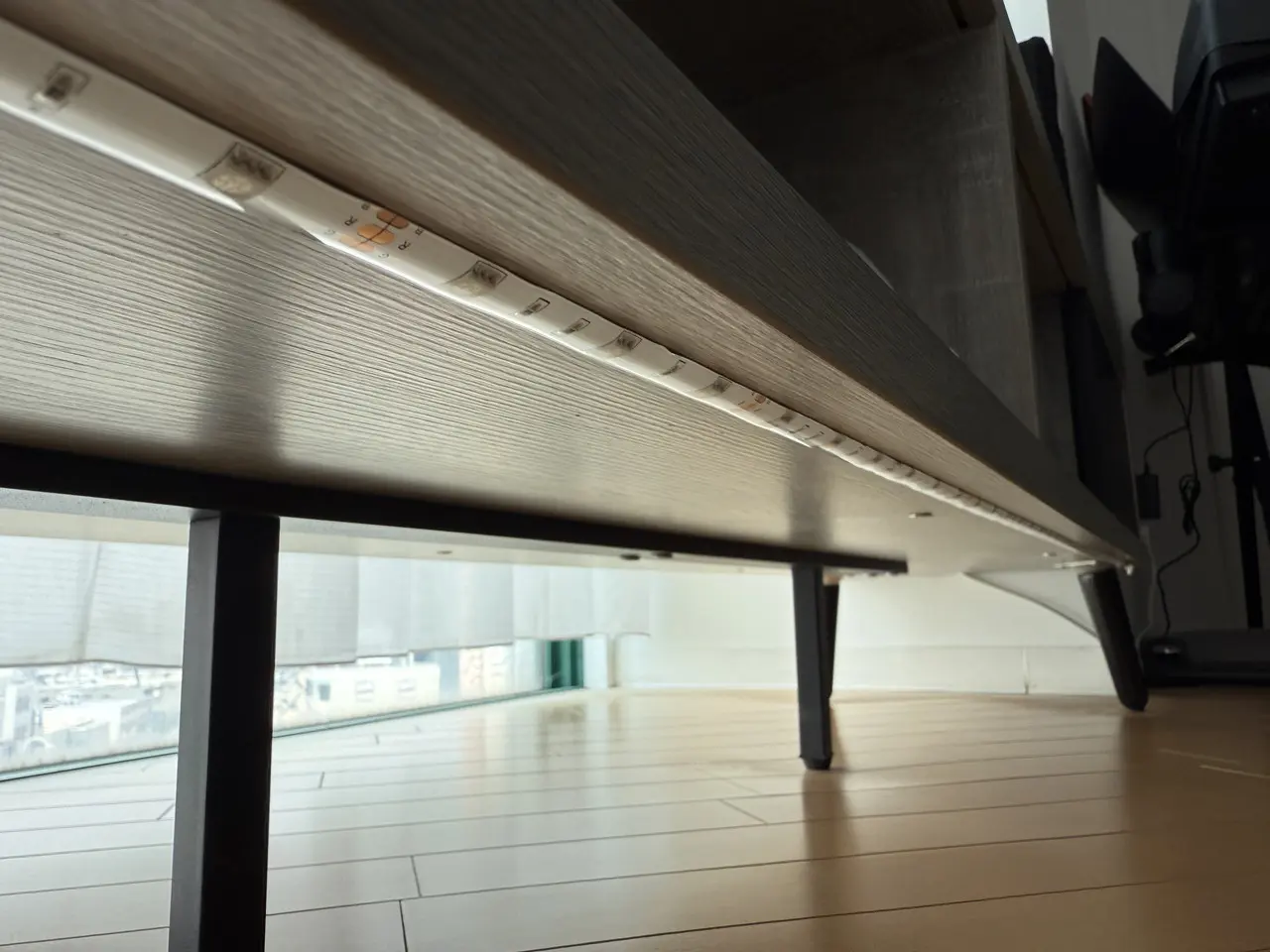 ▼「SwitchBot テープライト2」は、テレビ台下に間接照明として仕込んでみた。