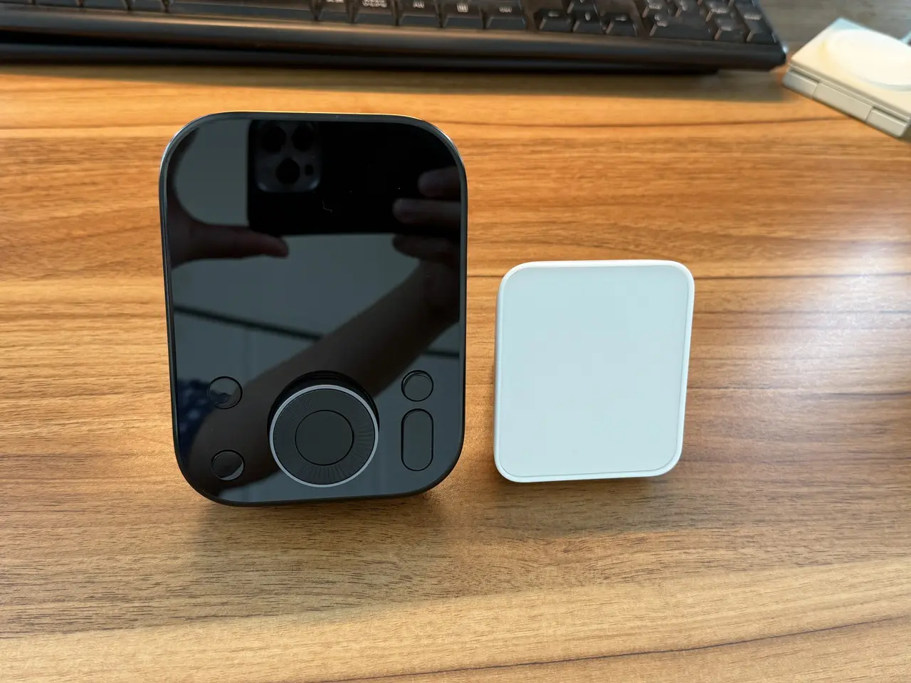 ▼本製品(左側)と、前モデル「SwitchBot ハブ2」(右側)を並べた様子。ハブ2のサイズは80×70×23 mmであるため、並べてみると大きさの違いは一目瞭然だ。