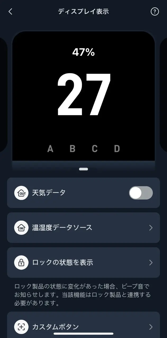 また、各部屋に設置されたCO2センサーや温湿度計と連動して、リビング、子ども部屋の温湿度もハブ3に表示。玄関ドアのロックの開閉状態もディスプレイのアイコンでいつでも確認できる。