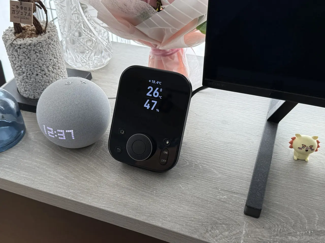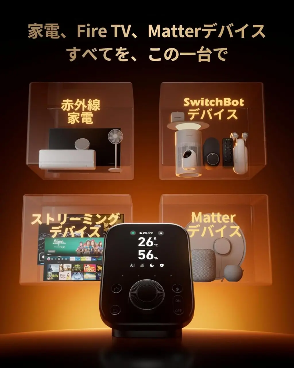 エアコンや照明などの赤外線家電はもちろん、Matter対応デバイス、Fire TVなど多様な家電を一元管理し、筐体に備えられたダイヤル&物理ボタンを利用して、誰でも直感的に細かい操作が可能となっている。さらに、「温度」「湿度」「光」「人感」の計4つのセンサーを内蔵し、部屋の状況をリアルタイムで把握しつつ、 自動で家電をON/OFFして快適&省エネを実現できる。スマートホーム化を目指す場合には、まさに必須とも言えるガジェットだ。