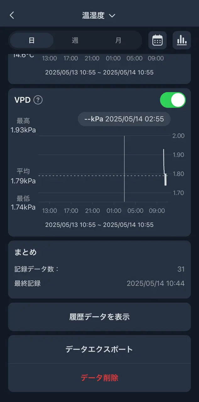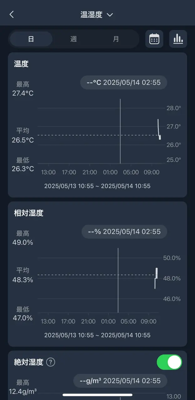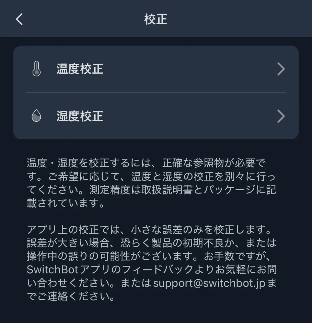 温湿度センサーの校正が可能。温度・湿度の測定値が明らかにおかしいと思う場合には、実行してみても良いだろう。