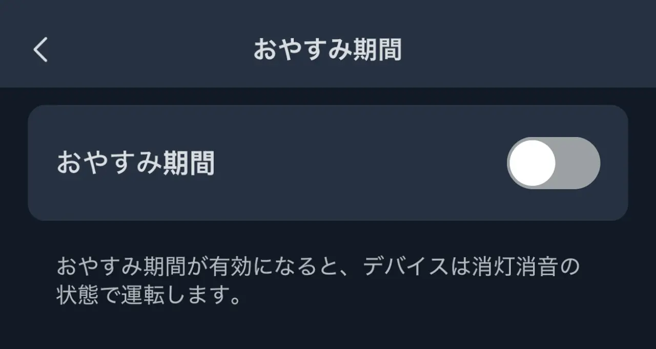 設定した時間のあいだ、ハブ3をおやすみモード(消灯・消音)で稼働させられる。