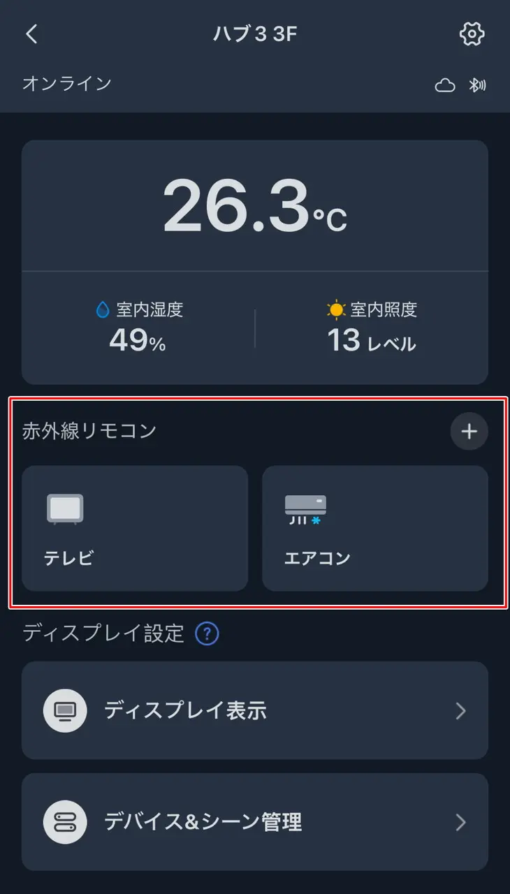 自宅内のあらゆる赤外線家電のリモコンをハブ3に登録しておくことで、各家電を操作する際にいちいち別々のリモコンを探す必要がなくなり、アプリ上から全ての操作を行うことが可能となる。