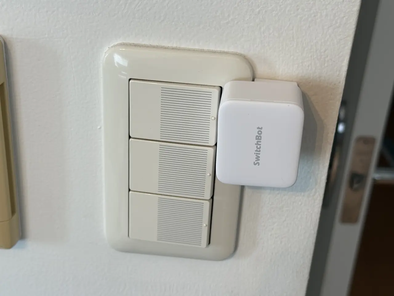 ▼「SwitchBot ボット」は、リビングの照明を点けるスイッチを押せる位置に設置。