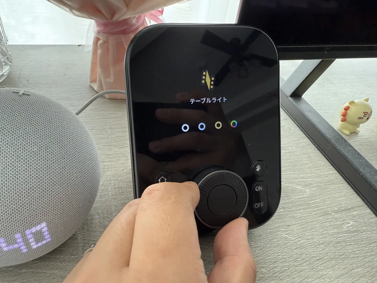 これらの動画のように、テープライトの照度やエアコン温度などを、ダイヤルを回して直感的にアナログ操作することができる。