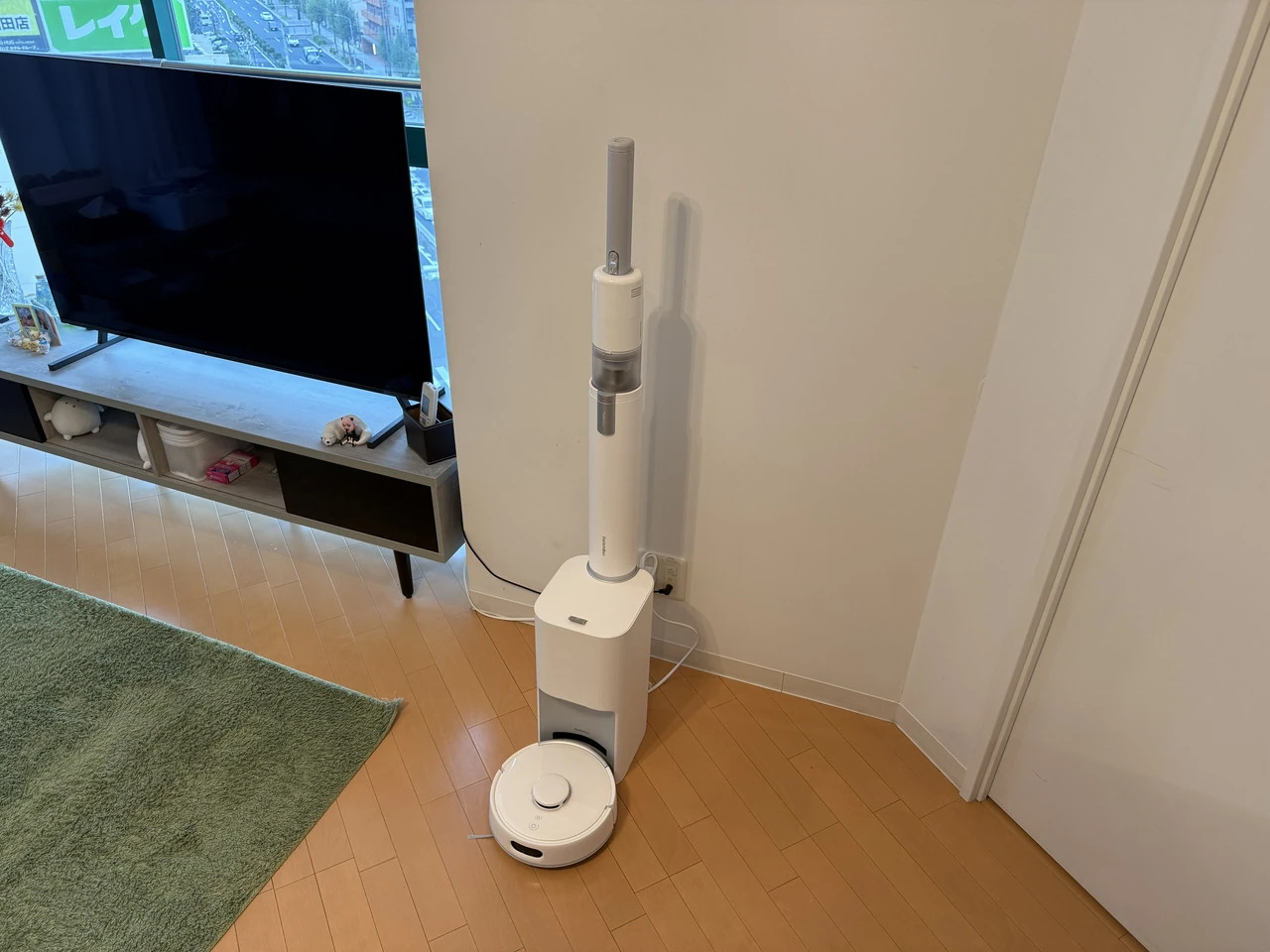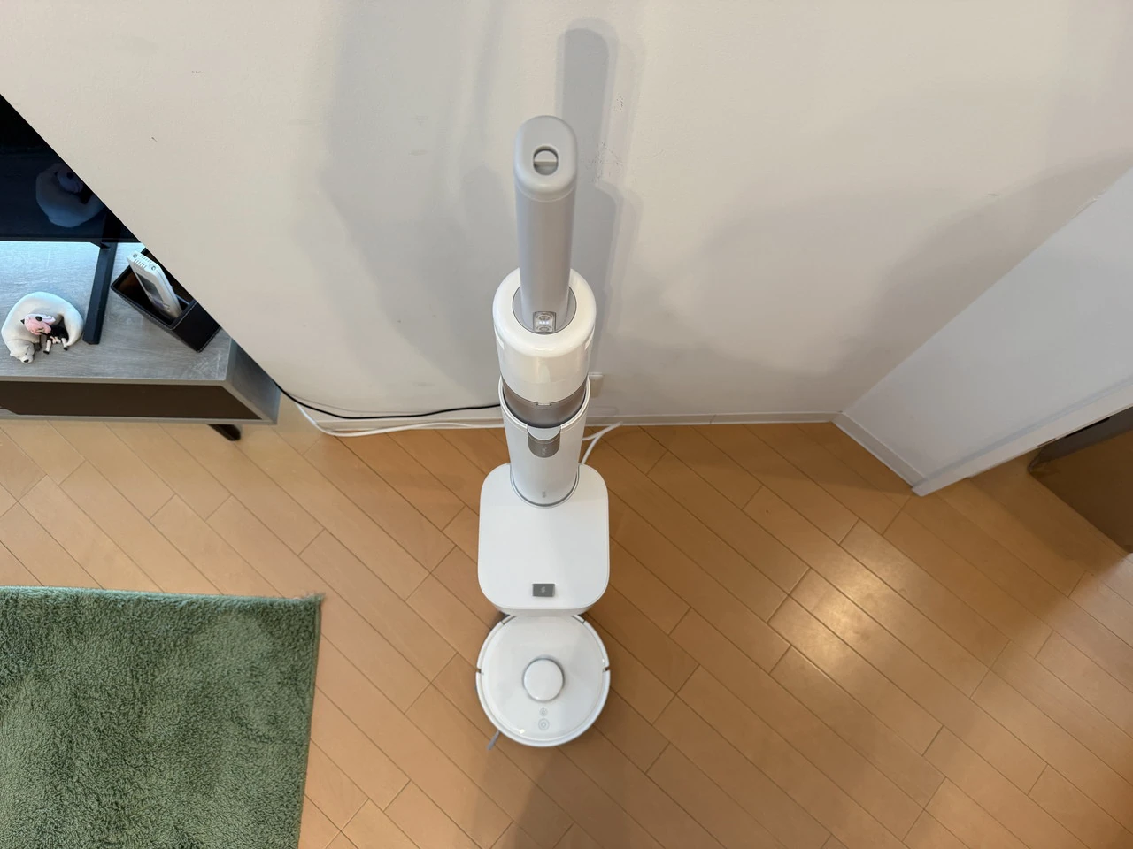 ロボット掃除機、スティック掃除機、集塵ステーションの3つのガジェットが付属するにもかかわらず、すべてを設置してもわずかA4サイズほどの設置面積しかとらない。