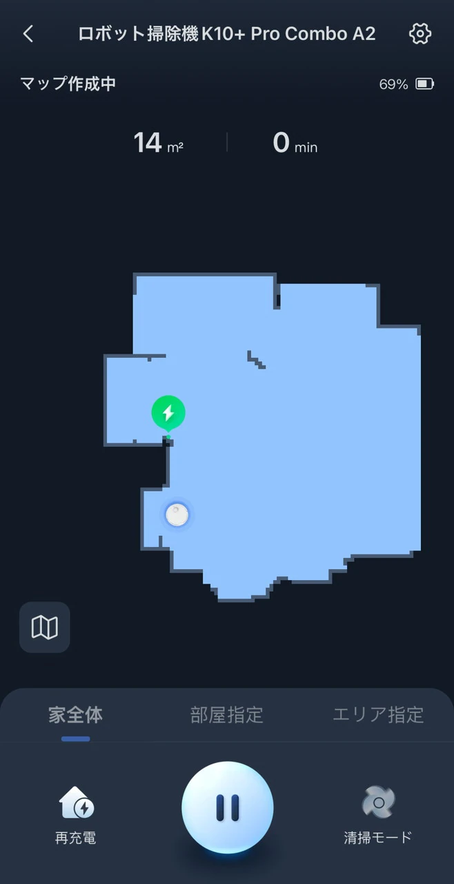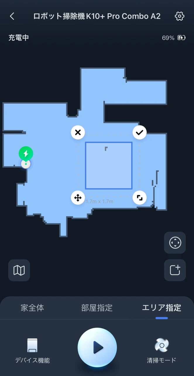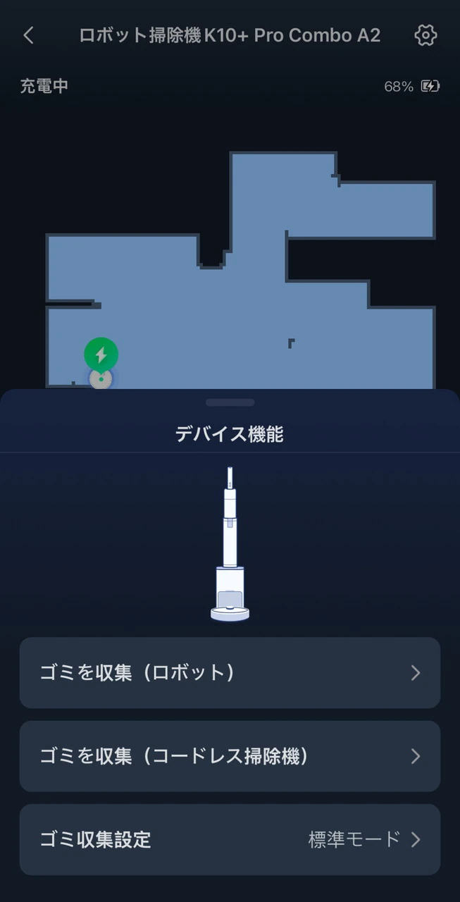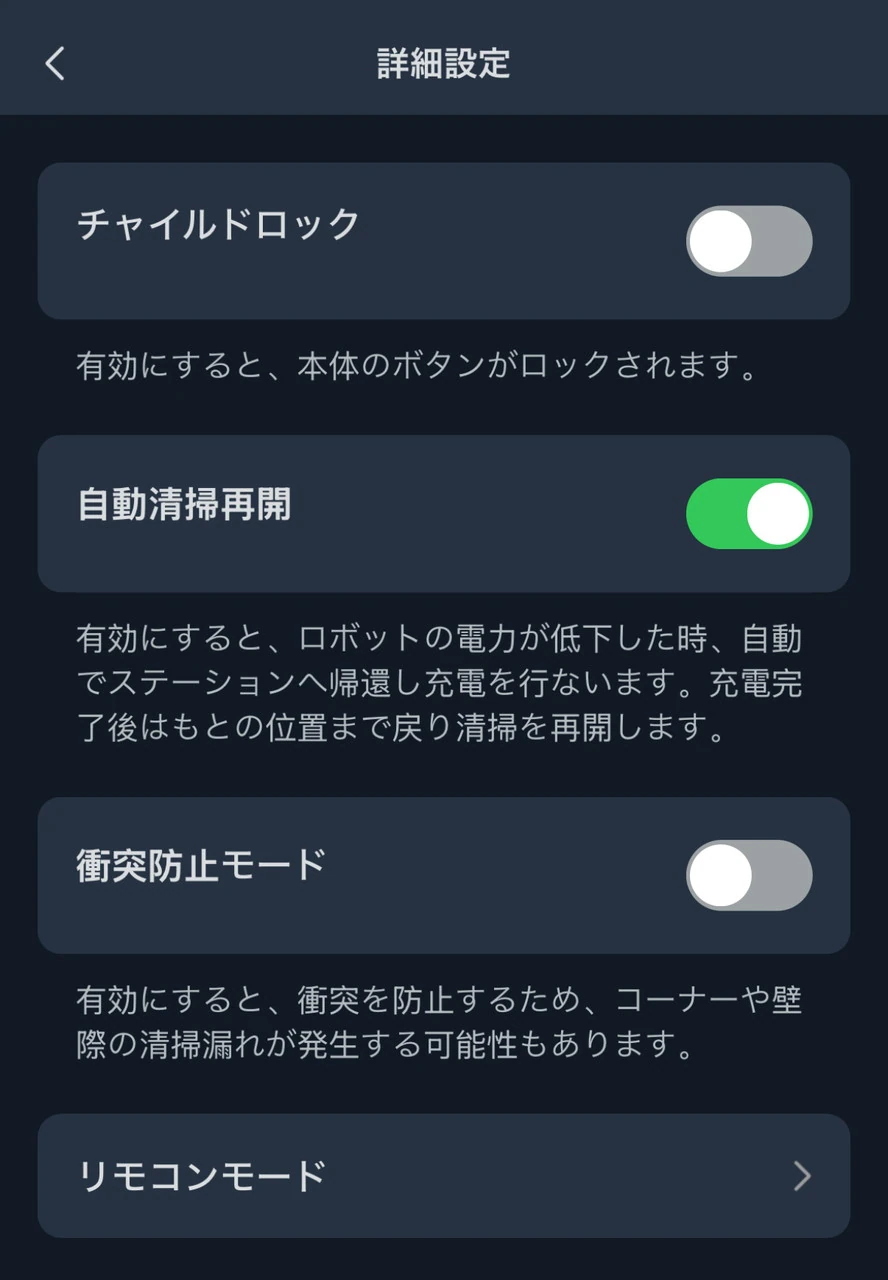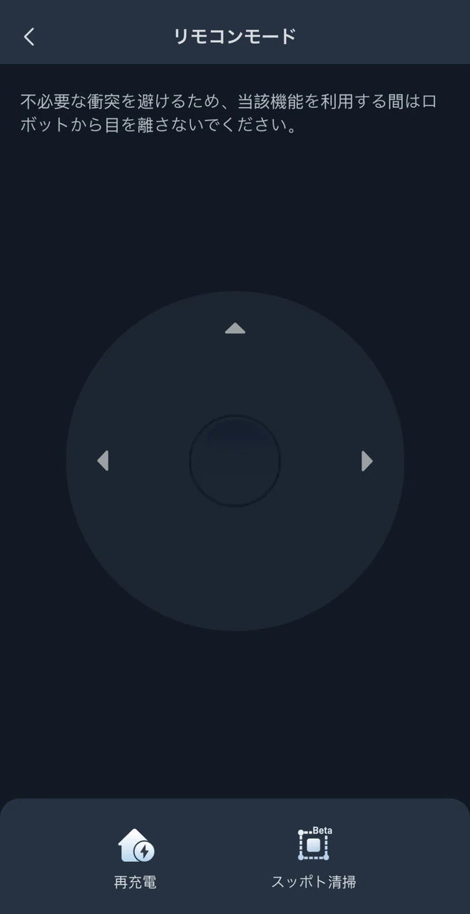 アプリ上には仮想リモコンが用意されており、ラジコンやゲームアプリの操作感覚で、ロボット掃除機を直接操作することも出来る。