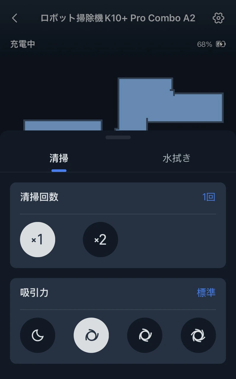 | 清掃方式 | ・ロボット掃除機:モップがけ + 吸引 ・スティック掃除機:吸引 |