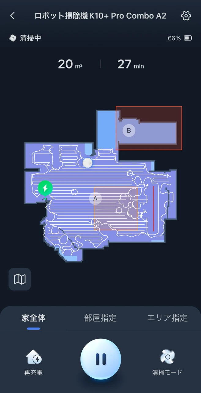 任意の箇所を素早く掃除させたい場合に役立つ。