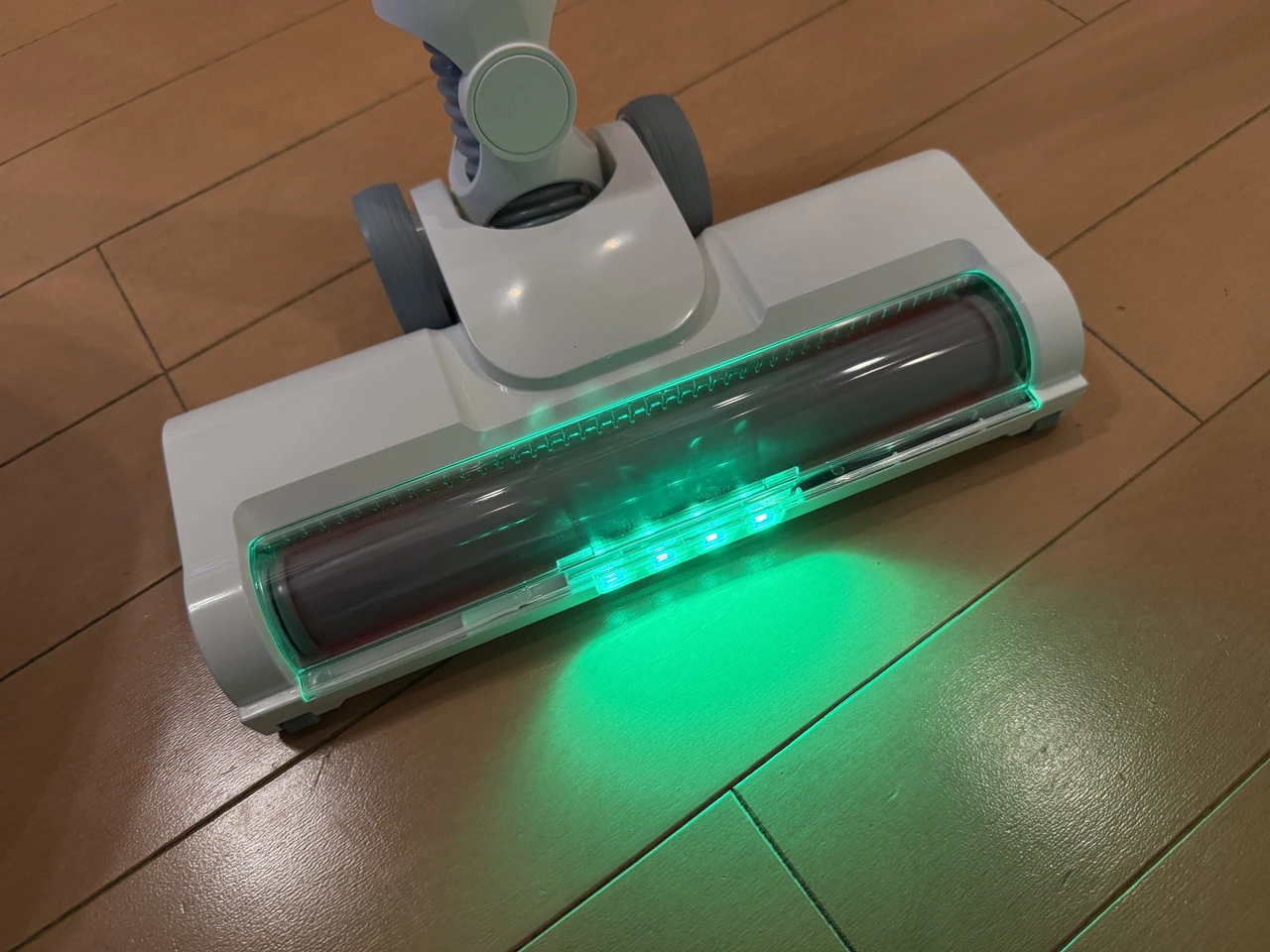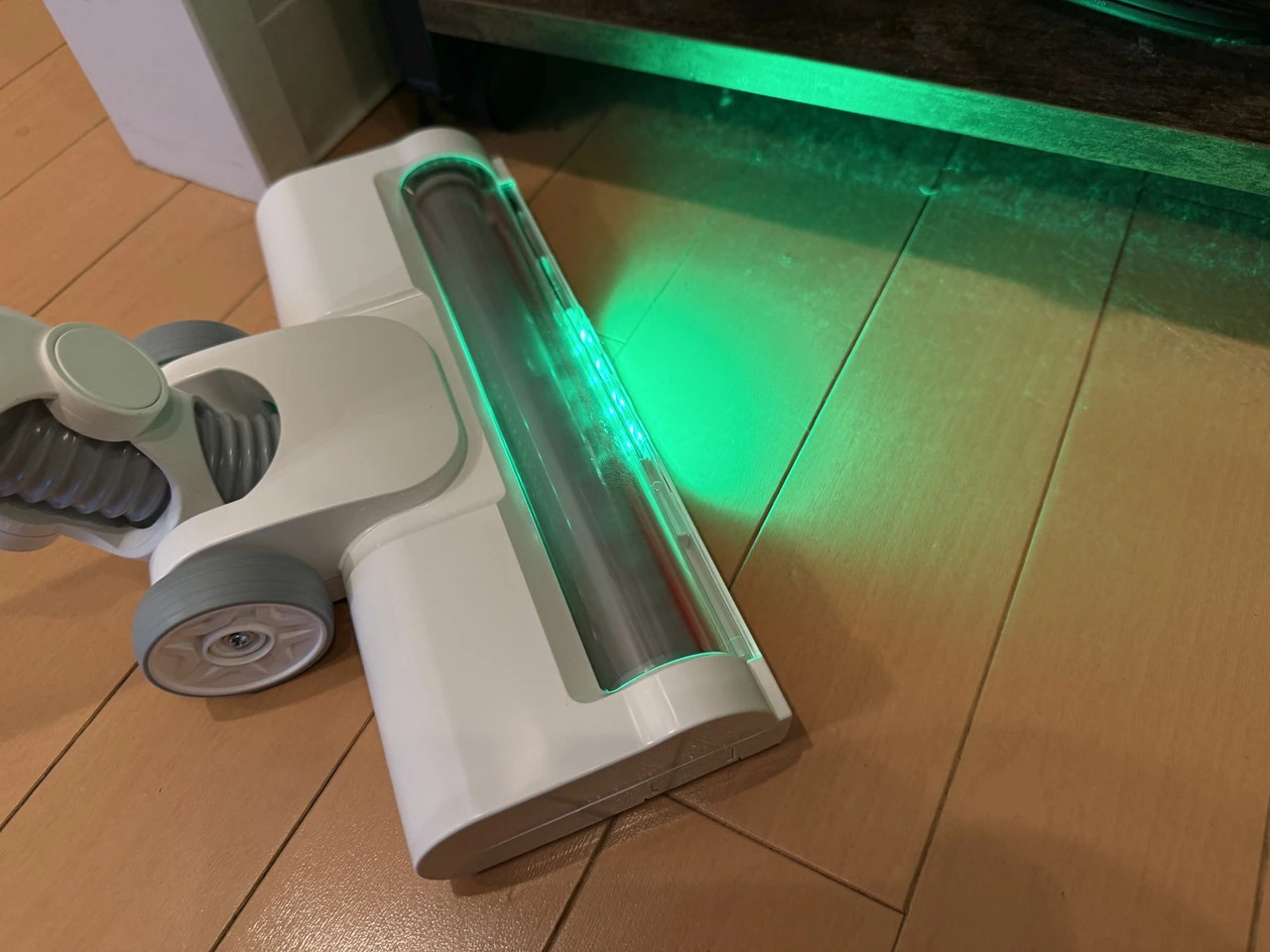 床用ノズルを取り付けている場合、掃除中にノズル前方に内蔵されたライトが点灯する。