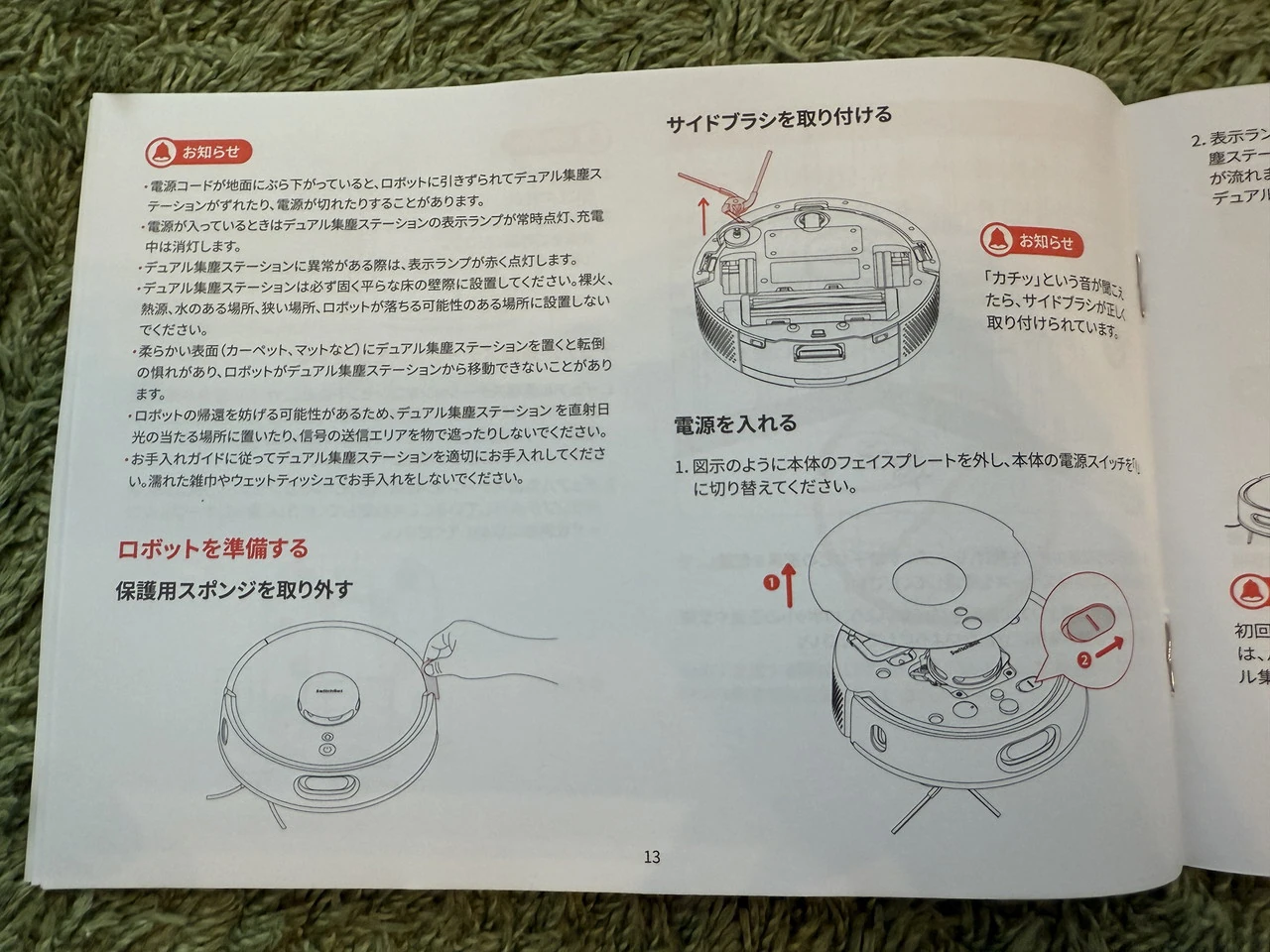 ▼ロボット掃除機とスティック掃除機それぞれ別の説明書が付属。もちろん、いずれも日本語に完全対応。
