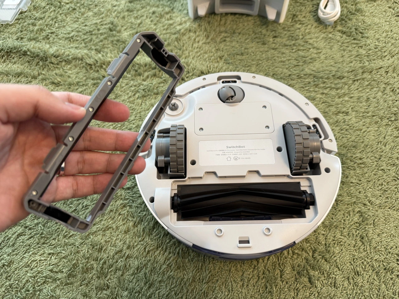 そして、お掃除シートを取り付けたパッドを、ロボット掃除機底部に装着する。