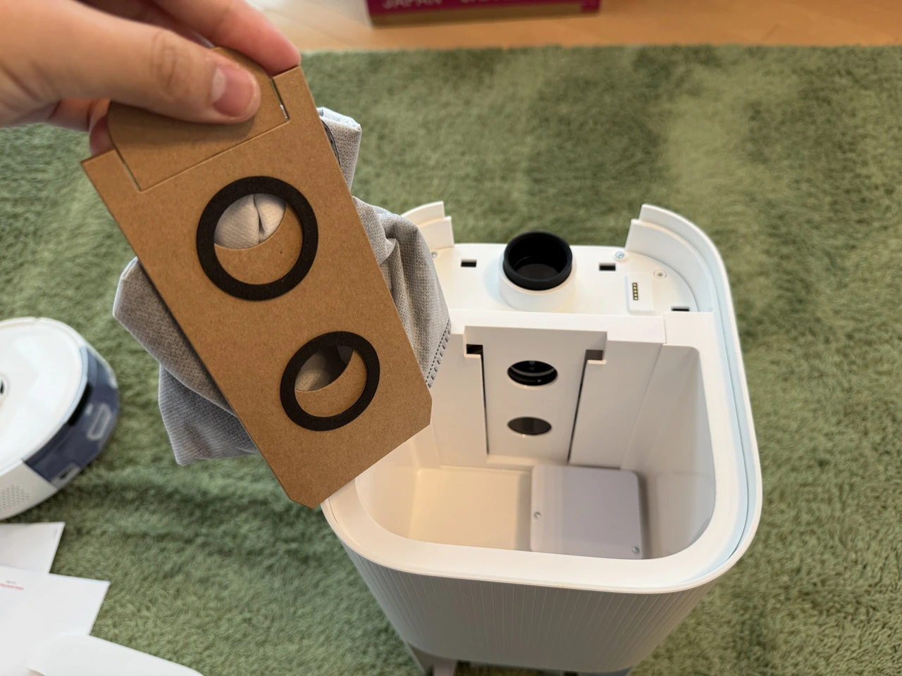 そして両方の掃除機で収集したゴミは、集塵ステーション内のダストバッグへ吸い上げて溜めておける。3Lの大容量ダストバッグのおかげで、面倒なゴミ捨ては70日に1回ほどの頻度で済む。