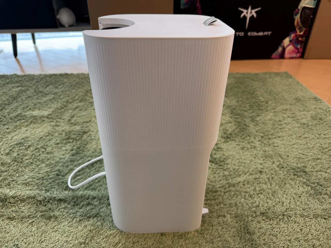 ▼集塵ステーションの外観。サイズは195 x 297 x 410mmとコンパクトであり、設置面積を取らない縦伸び型デザインとなっている。