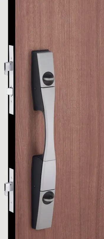 ドアとの一体感のあるカバー型デザインで、サムターンや高さ調節台などの部品が外に露出することもなく、鍵周りのスタイリッシュな印象を保つことができる。