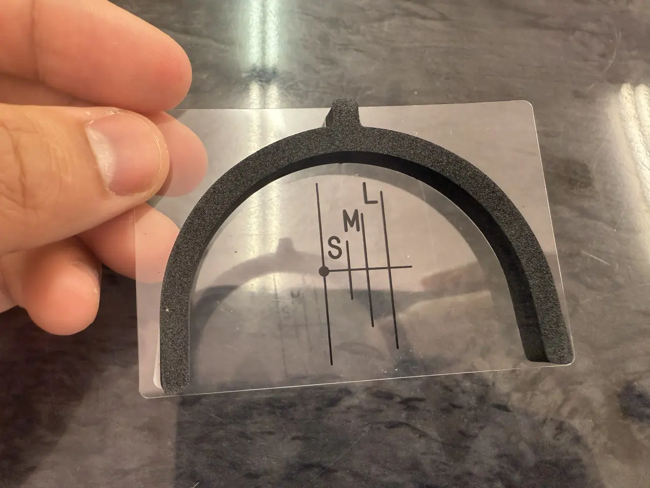▼サイズ目安カード&マークシートは、ドアロック取付時の位置を調整する際に使用する。