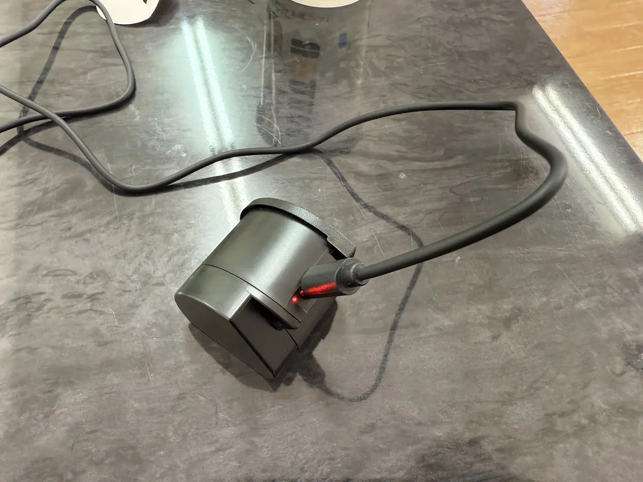 ▼Type-Cケーブルに接続して充電開始。充電の進行具合はランプ点灯色から把握可能。