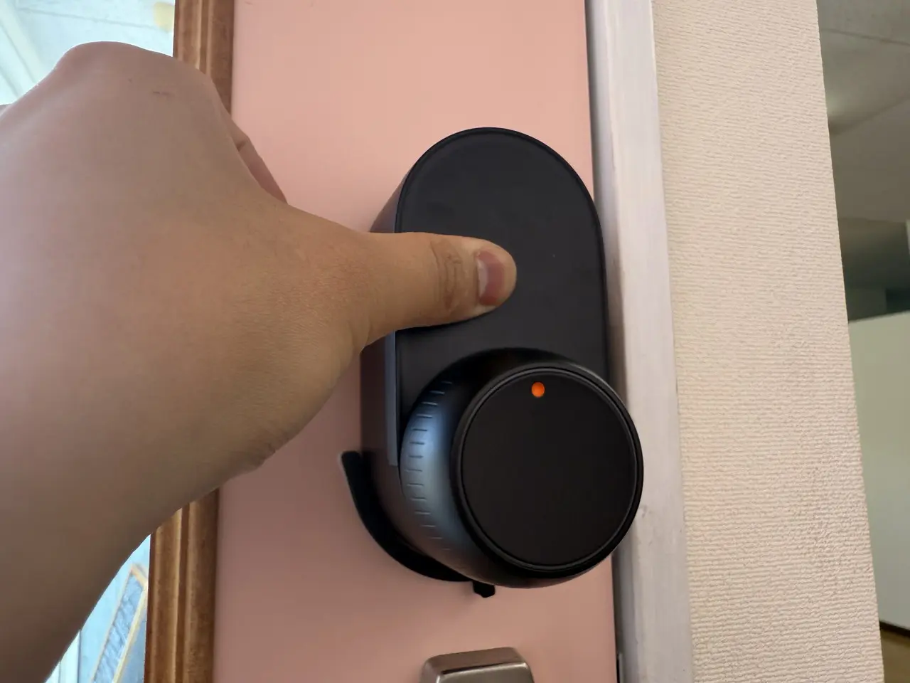 ドアロックUltraの中央部分を押すことでスムーズに解錠可能。アプリをインストールすることで、スマホからの遠隔解錠も行うことができる。