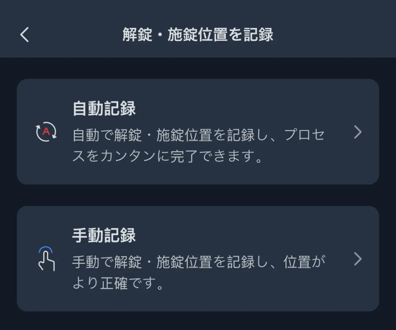 前述したように、取り付けるドアつまみの種類や強度に応じては、「サムターンの解錠・施錠位置記録」が正常に完了しない場合がある。その際には「手動記録」を利用して、解錠・施錠位置を手動で設定することをオススメする。